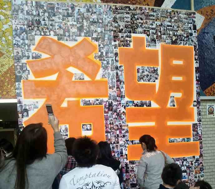 次の2枚は、昨年末の青年大会会場の入り口に展示された壁絵です。