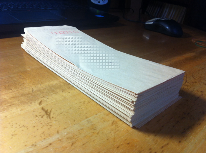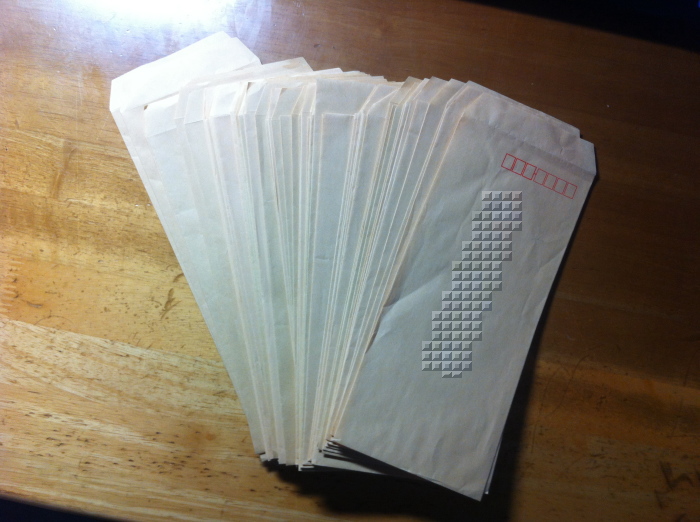 我ながら「こんなに周ってたかな?」と驚きなのですが、今いるブロック(または地区)だけでも20年以上周り続けていることになりますので、こういう封筒の数になるのでしょうね。