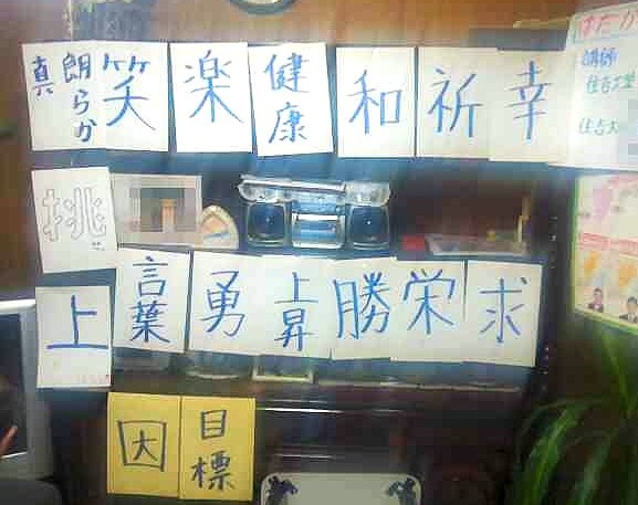 一番上の写真は、今年初めの座談会のみんなの広場で、決意・目標を漢字で表して発言したものを、終了後に掲示したものです。