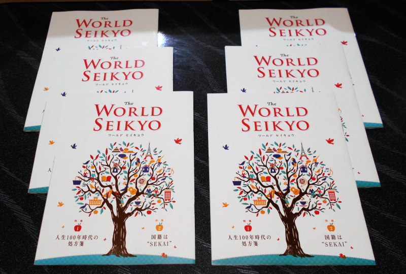 今年になって今日までで117万遍の唱題を実践しました。昭和60年7月に再発心してからの通算は5404万遍となりました。すぐに話を変えますが、下の写真は『ワールドセイキョウ』6冊です。友人・知人に贈るために購入したものです。