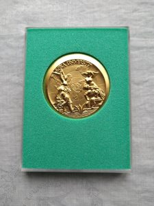 写真の金メダルは(と言っても金(色)のメダルですが)、1998年に創価大学通信教育部を卒業した時に頂いた記念のメダルです。なぜこれを掲載したかというと、私が56年の人生のなかでもらった唯一の金メダルだからです。延期にはなりましたが、今年がオリンピックの年だったこともあります。さらに付け加えると、私が生まれたのがちょうど56年前の東京オリンピック開催の年でした。