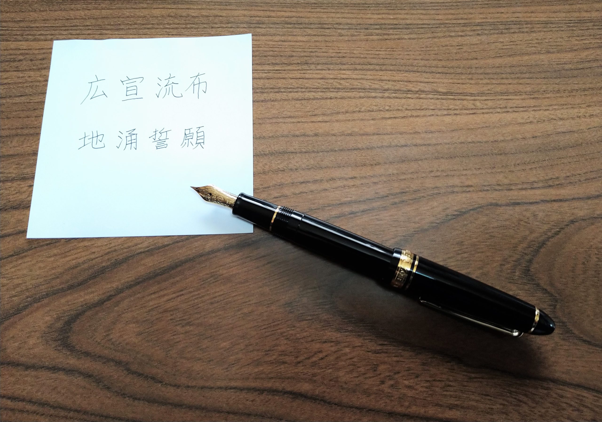 「希望・勝利の年」開幕の第1回本部幹部会は体験など素晴らしかったですね。さて、上の写真は後輩の同志に触発され(真似をして)、コロナ禍を約1年よく頑張ってきましたということで、自分へのご褒美に購入した万年筆です。それなり本格的な万年筆って、書き味がこんなに良いのですね。初めて知りました。コンバーターでインクを注入した後に、万年筆をほとんど指に乗せるだけの軽い筆圧で、ペンを運ぶと、非常に滑らかに文字が書けるのです。(ペン字を習ったことは皆無です。試し書きは、赤面の至りですが、そこはご容赦を)