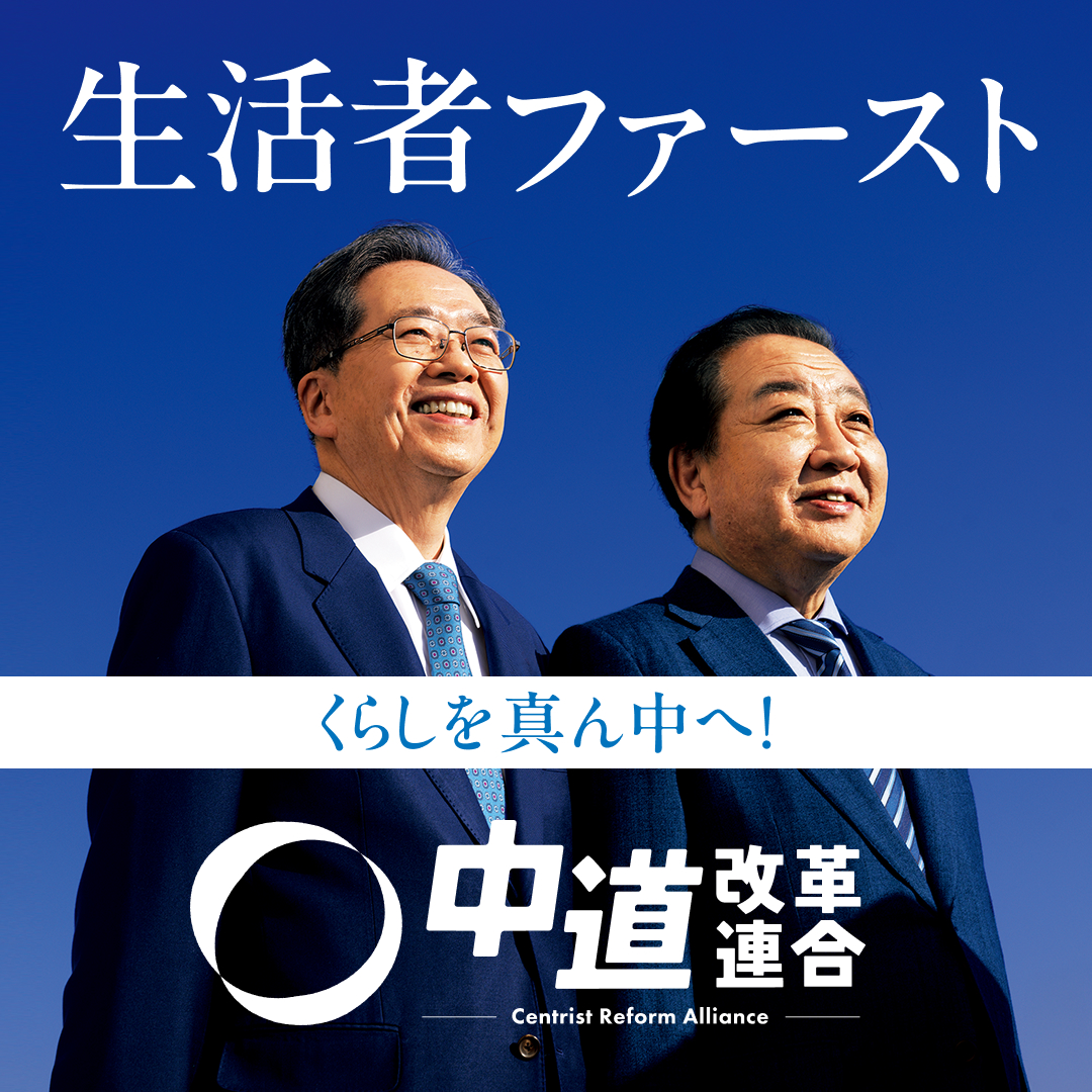 中道改革連合は、生活者ファーストを掲げる日本の政党です。くらしを政治の真ん中に据え、現実的な改革を推進。基本情報、政策、活動情報、所属議員一覧などをご覧いただけます。